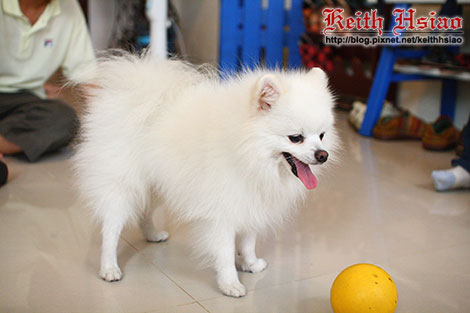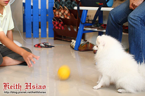 很可愛的小博美,只要手上有球跟他玩,就能把他拐走喔XD