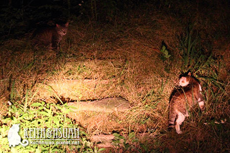 這張是用機車的前燈打光的,在拍他們時,他們就暫時停戰,我們一轉頭要離開,車燈沒照他們後,他們果然就繼續打架了...