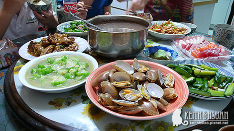 隨便吃吃都是這麼一大桌加飯後水果跟甜點兼泡茶...
